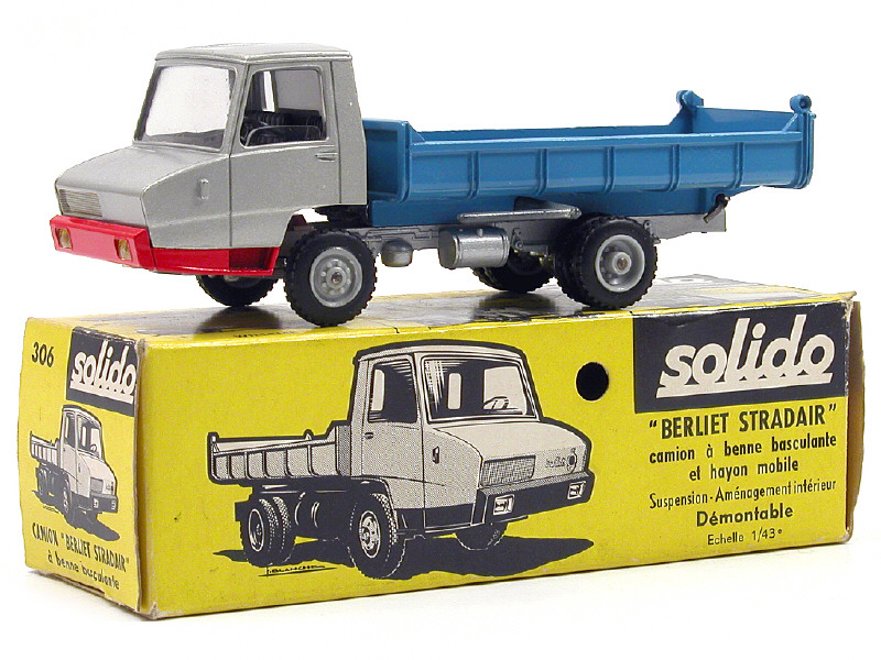 SOLIDO (FRANCE) 306 BERLIET STRADAIR Benne basculante gris métal, bleu & rouge