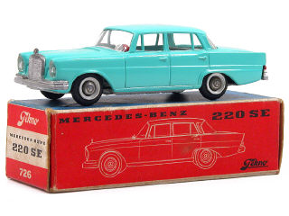 TEKNO (DANEMARK) 726 MERCEDES 220 SE turquoise, intérieur blanc cassé