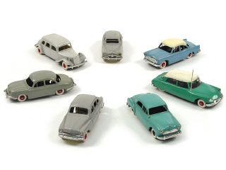 miniatures reproduisant les modèles : SIMCA, CITRÖEN, FORD, PANHARD & RENAULT - très légère déformation des carrosseries - manque 3 antennes & un phare diamant - un modèle mécanique