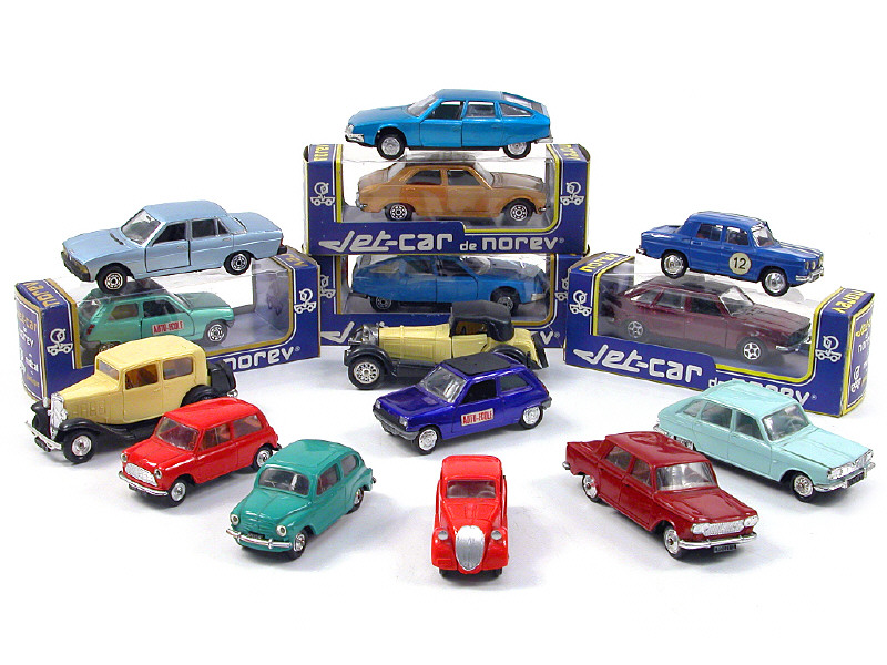 états de 'A' à 'C' - miniatures reproduisant les modèles : CITRÖEN, MORRIS, RENAULT, FIAT, SIMCA, MERCEDES & PEUGEOT - 4 modèles en boîte - un petit manque sur un véhicule & un autre avec petits détails de peinture ajoutés