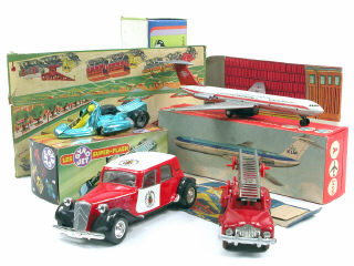 états de 'C' à 'E' - comprend : camion-balayeuse & camion-remorque de la marque FRANCE JOUETS & auto service incendie de la marque JOUSTRA