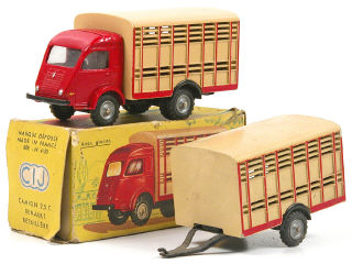 C.I.J. (FRANCE) 3/28 Remorque-bétaillère beige & rouge