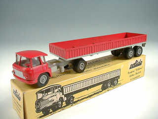 SOLIDO (FRANCE) 302 WILLEME Semi-remorque plateau à ridelles TITAN framboise & gris
