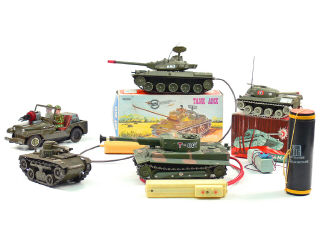 états de 'A' à 'F' - on y retrouve notamment les marques : GAMA, JOUSTRA & T.N - on y joint un container de parachutage 'ACTION JO' - 2 chars avec boîte - moteurs à piles (non testés)