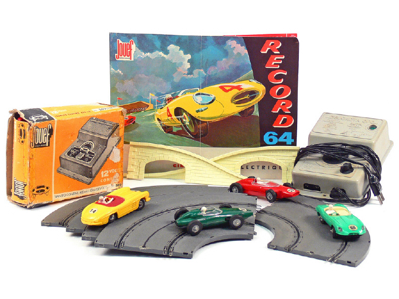 états de 'B' à 'D' - comprend : une JAGUAR, une MERCEDES, une FERRARI F1, une B.R.M. F1, un transformateur référence 289 avec boîte, un transformateur 'DISJONCTA 600', 2 moteurs de rechange & un ensemble de balais sous sachets, différents rails & un catalogue incomplet - petits manques