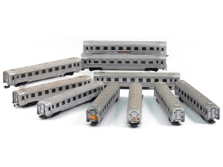 V.B. 'HO' (FRANCE) Ensemble de 10 voitures de voyageurs inox