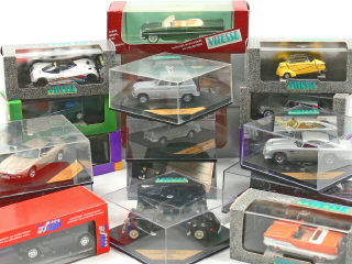 miniatures reproduisant les modèles : ASTON MARTIN, CADILLAC, CHEVROLET, CITROËN, JAGUAR, MERCEDES, MESSERSCHMITT, MORGAN, NASH, PEUGEOT, RENAULT & WOLSELEY