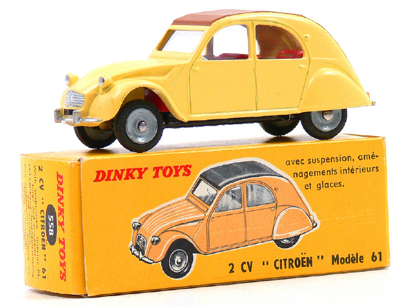 DINKY TOYS (FRANCE) 558 CITROËN 2CV Modèle 1961 (version avec jantes de grand diamètre) jaune paille, capote marron