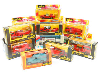 SOLIDO (FRANCE) Ensemble de 14 véhicules, 2 remorques, une caravane