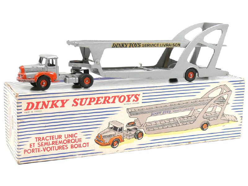 DINKY TOYS (FRANCE) 894 UNIC Porte-voitures 'BOILOT' (version avec jantes concaves) gris métal & orange