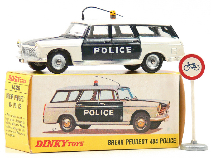 DINKY TOYS (FRANCE) 1429 PEUGEOT 404 Break 'POLICE' bleu nuit & blanc