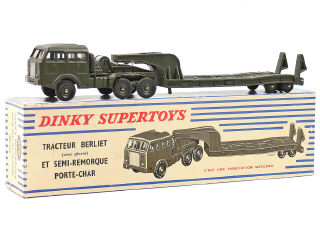 DINKY TOYS (FRANCE) 890 BERLIET Transport de char (version avec jantes du tracteur concaves & de la remorque convexes) kaki