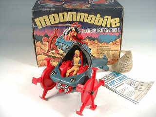 longueur 31 cm - moteur à piles (fonctionne) - manque fusées - bulle fendue - une fixation de la trappe de piles cassée - on y joint 2 notices de CAPAIN LASER