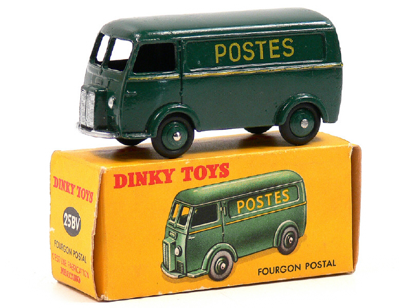 DINKY TOYS (FRANCE) 25BV PEUGEOT D3A 'POSTES' (première version avec inscriptions au tampon) vert foncé