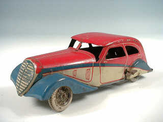 C.R. (FRANCE) 91 PEUGEOT 202 en tôle lithographiée rouge, crème & bleu