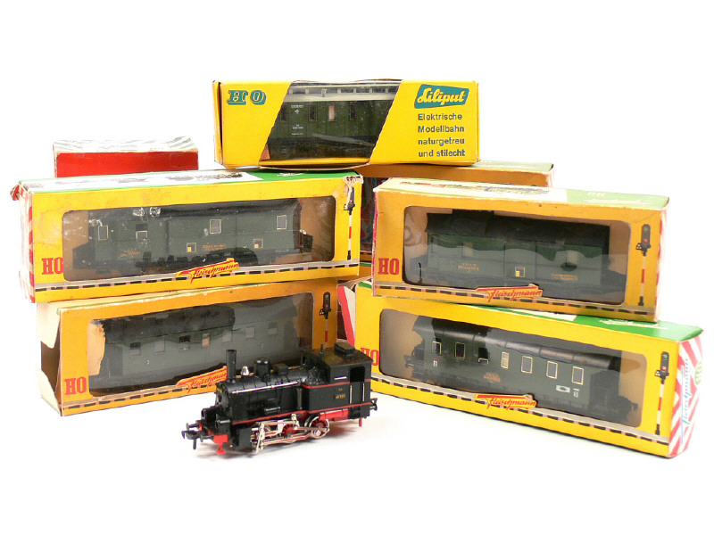 comprend : une locomotive à vapeur type 030 DB 891315, 4 voitures de voyageurs & 3 fourgons à bagages - intérieurs décorés & petits détails de peinture ajoutés sur les wagons & les voitures de voyageurs - une boîte en état 'd' & un wagon de la marque 'LILIPUT'