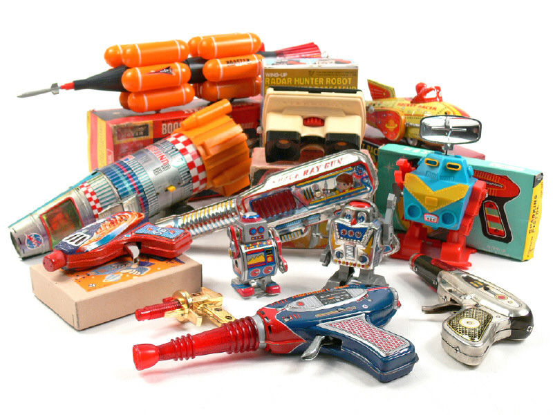 états de 'A' à 'C' - comprend : des fusées, des pistolets & des robots - 6 modèles avec boîte - on y joint un STEREOFILMS de la marque BRUGUIERE - on y retrouve notamment les marques : HOVER, SCHYLLING, Y, MTU & TOVTOY