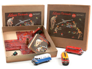 avec cales - on y joint 3 camions de la série en état 'A' (un camion de pompiers & 2 camions-citernes 'ARAL' & 'SHELL')
