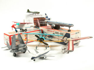 envergure 33 cm - moteur à piles (fonctionne) - direction à revoir - manque une pale d'hélice & une partie du système de blocage de l'aile