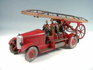 fabriqué de 1931 à 1937 - longueur 43 cm - moteur à clef (fonctionne avec frein) - direction - doute sur la peinture de la calandre - manque main du conducteur - SUPERBE PIECE !