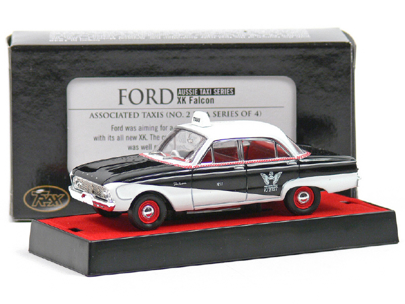 TRAX (AUSTRALIE) TR26G FORD XK FALCON Taxi de Melbourne 'ASSOCIATED TAXIS' noir & blanc