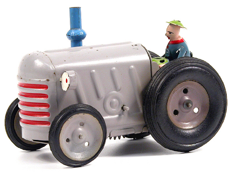 longueur 13 cm - fabrication des années 1950-1960 - moteur à ressort (fonctionne) - ce modèle est de la même fabrication que la moissonneuse-batteuse P.O.M. 403 vendue lors de l'une de nos précédentes ventes - TRES BELLE REALISATION !