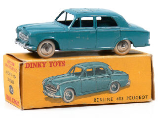 DINKY TOYS (FRANCE) 24B PEUGEOT 403 (version sans vitre & avec jantes convexes) bleu nattier