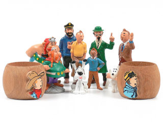 états de 'B' à 'C' - comprend : 3 TINTIN, le capitaine HADDOCK, le professeur TOURNESOL, MILOU, OBELIX, ABRARACOURCIX & IDEFIX - on y retrouve notamment les marques : ESSO, BULLY & M.D TOYS - 2 petits manques - on y joint 2 ronds serviettes avec l'éffigie de TINTIN - conditions 'B' to 'C' - includes the aforementioned models & makes - one incomplete figurine - also added: 2 napkin rings bearing the image of TINTIN