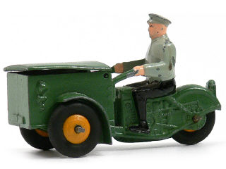 DINKY TOYS (FRANCE) 14A Triporteur (dernière version avec roues à pneus 'M') vert, jantes jaunes & pilote à chemise grise