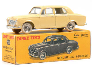 DINKY TOYS (FRANCE) 521 PEUGEOT 403 (version avec vitres & jantes concaves) jaune paille