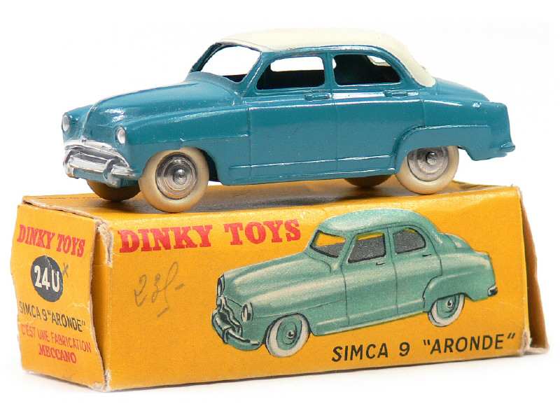 DINKY TOYS (FRANCE) 24U SIMCA 9 ARONDE (version avec calandre 'gueule de squale') bleu soutenu, toit blanc