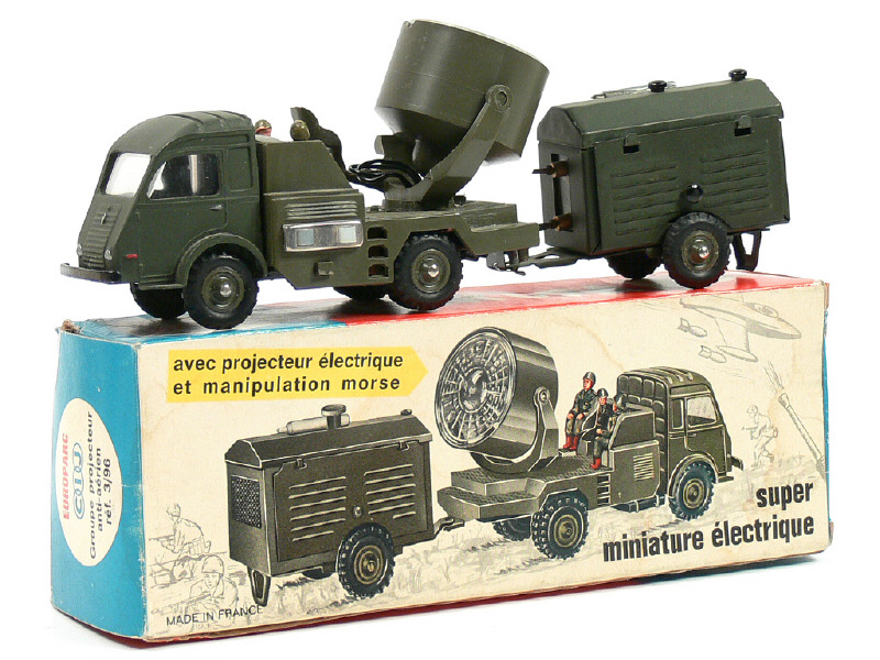 avec remorque groupe électrogène (électrique) & mécanisme de morse lumineux relié au projecteur - avec soldats - manque câblage entre la remorque & le camion - projecteur désolidarisé de sa base