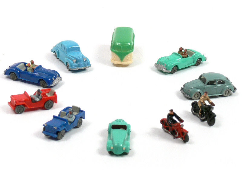 WIKING (ALLEMAGNE) Ensemble de 7 voitures, un utilitaire & 2 motocyclistes