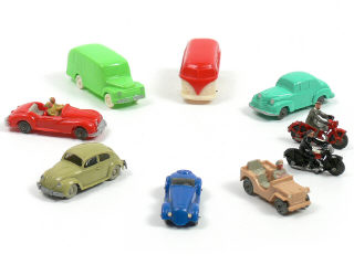 WIKING (ALLEMAGNE) Ensemble de 5 voitures, 2 utilitaires & 2 motocyclistes