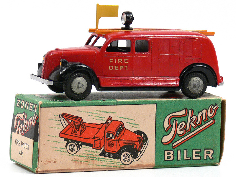 TEKNO (DANEMARK) 486 TRIANGEL Camion de pompiers 'FIRE DEPT' rouge & noir
