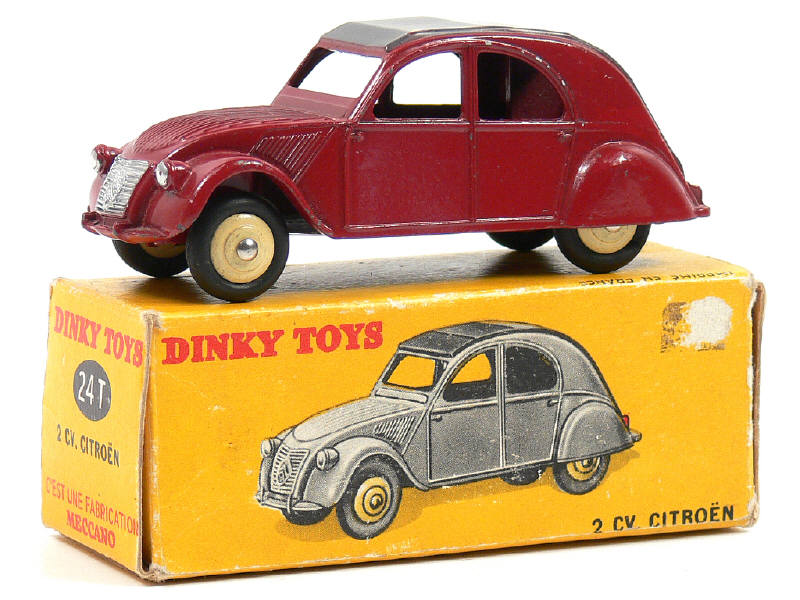 DINKY TOYS (FRANCE) 24T CITROËN 2CV (version avec 3 feux arrière) grenat, jantes crème