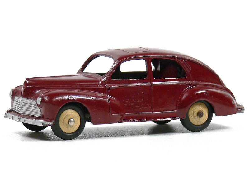 DINKY TOYS (FRANCE) 24R PEUGEOT 203 Petite lunette arrière (version avec intérieur de toit lisse & feu de stop) grenat, jantes crème