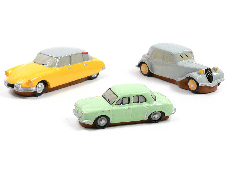 LERAY (FRANCE) Ensemble de 3 voitures en plâtre