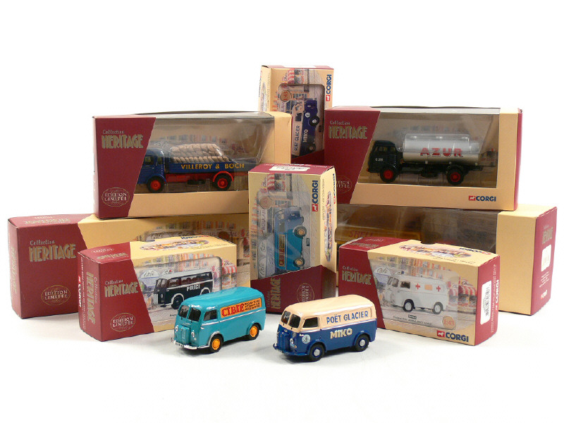 série 'CORGI HERITAGE' - miniatures reproduisant les modèles : BERLIET, CITROËN, PEUGEOT & SIMCA - avec certificats d'éditions limitées numérotés & sachets d'accessoires