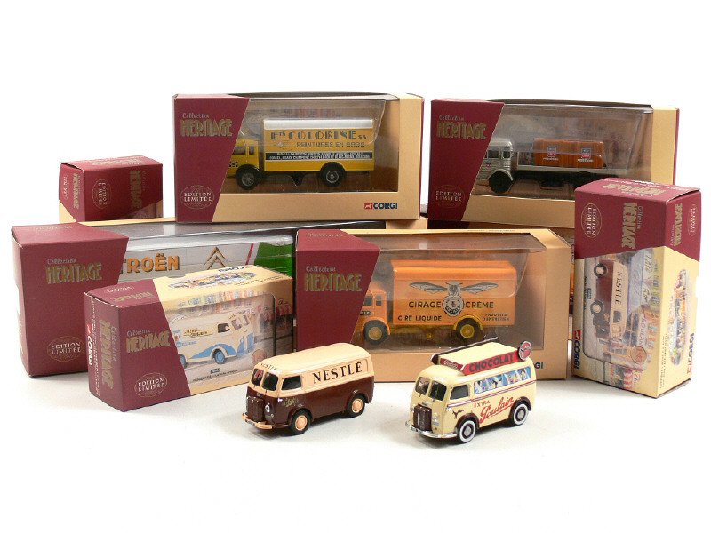série 'CORGI HERITAGE' - miniatures reproduisant les modèles : BERLIET, CITROËN, PEUGEOT, RENAULT & SIMCA - avec certificats d'éditions limitées numérotés & sachets d'accessoires