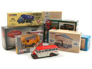 CORGI TOYS (GB) Ensemble de 4 camions, 3 bus, un utilitaire & une machine à vapeur