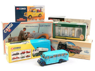 CORGI TOYS (GB) Ensemble de 3 camions, 3 bus, 2 utilitaires, une voiture & 3 pompes à essence