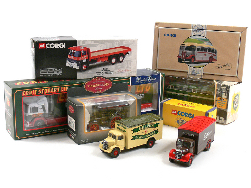 CORGI TOYS (GB) Ensemble de 5 camions, un bus, un tramway & une machine à vapeur