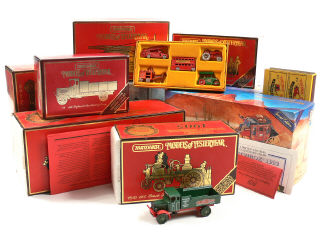 miniatures reproduisant notamment les modèles : BUSCH, LEYLAND, MERRYWEATHER & ROLLS ROYCE - 5 modèles en coffret de la série 'MATCHBOX SERIES'