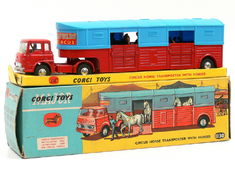 CORGI TOYS (GB) 1130 BEDFORD TK Transport de chevaux 'CHIPPERFIELDS CIRCUS' rouge & bleu ciel