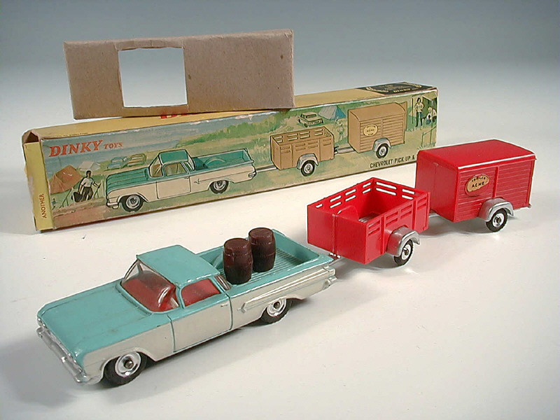 DINKY TOYS (GB) 448 CHEVROLET EL CAMINO avec remorques turquoise & blanc, remorques rouges