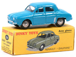 DINKY TOYS (FRANCE) 524 RENAULT DAUPHINE (version avec vitres & jantes convexes) bleu vif