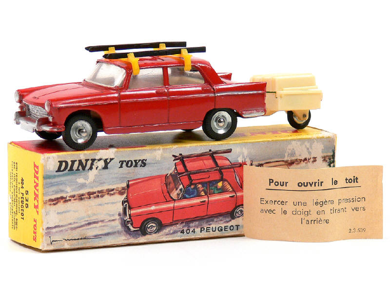 DINKY TOYS (FRANCE) 536 PEUGEOT 404 avec remorque monoroue (skis noirs) rouge