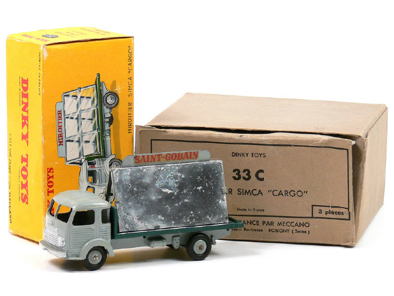 DINKY TOYS (FRANCE) 33C SIMCA CARGO Miroitier 'SAINT GOBAIN' (version avec jantes convexes) gris, plateau vert foncé & jantes grises