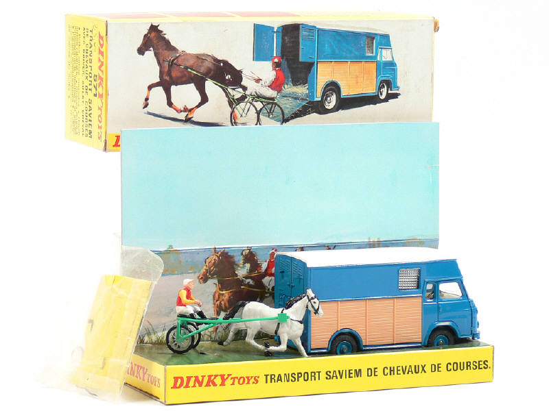 DINKY TOYS (FRANCE) 571 SAVIEM Goélette transport de chevaux bleu, bois, toit blanc